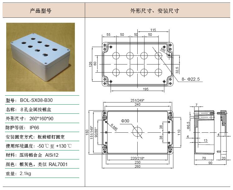 BOL-系列金属按钮盒是我公司创新设计的,外形美观,坚实耐用,安装方便,防尘防水(IP66)。